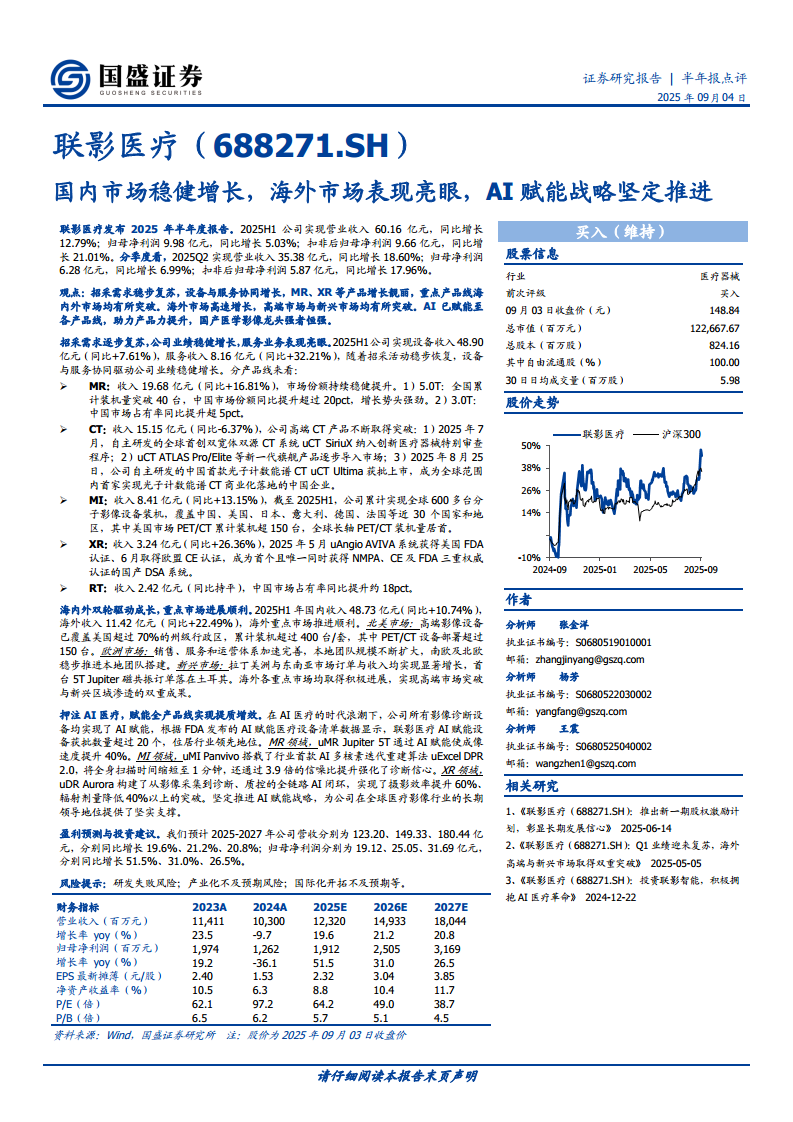联影医疗(688271):国内市场稳健增长,海外市场表现亮眼,AI赋能战略坚定推进