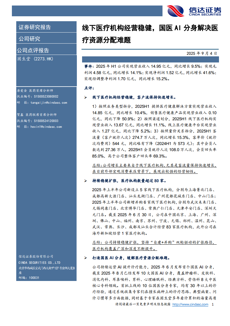 固生堂(02273):线下医疗机构经营稳健,国医AI分身解决医疗资源分配难题