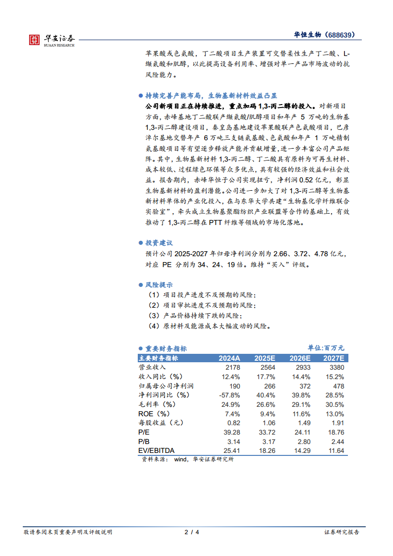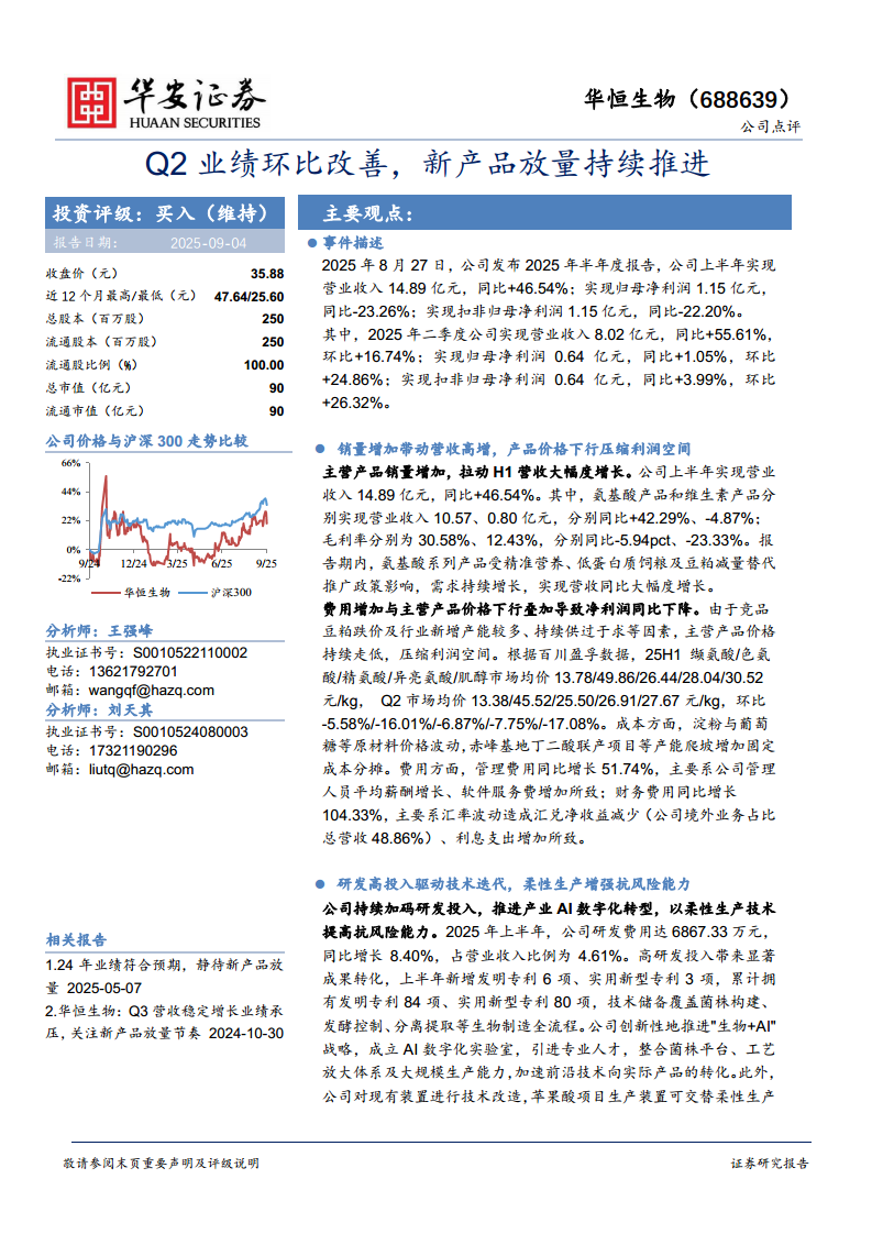 华恒生物(688639):Q2业绩环比改善,新产品放量持续推进