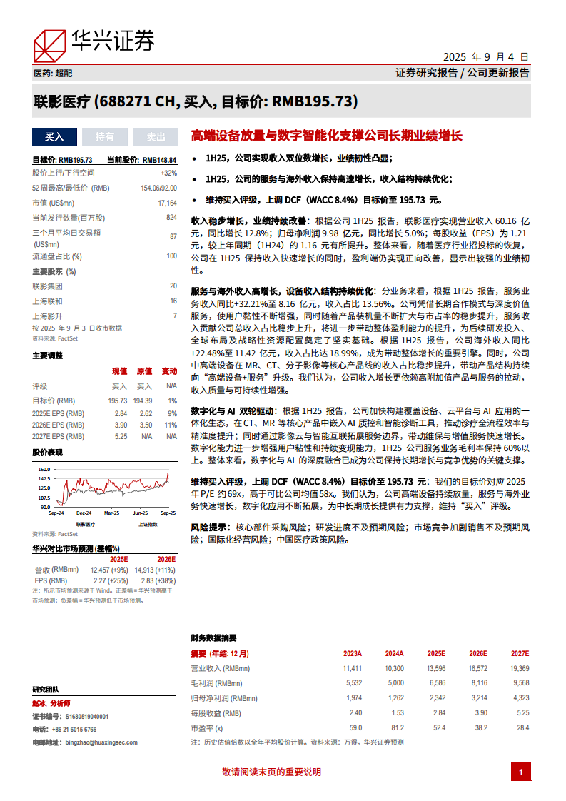 联影医疗(688271):高端设备放量与数字智能化支撑公司长期业绩增长