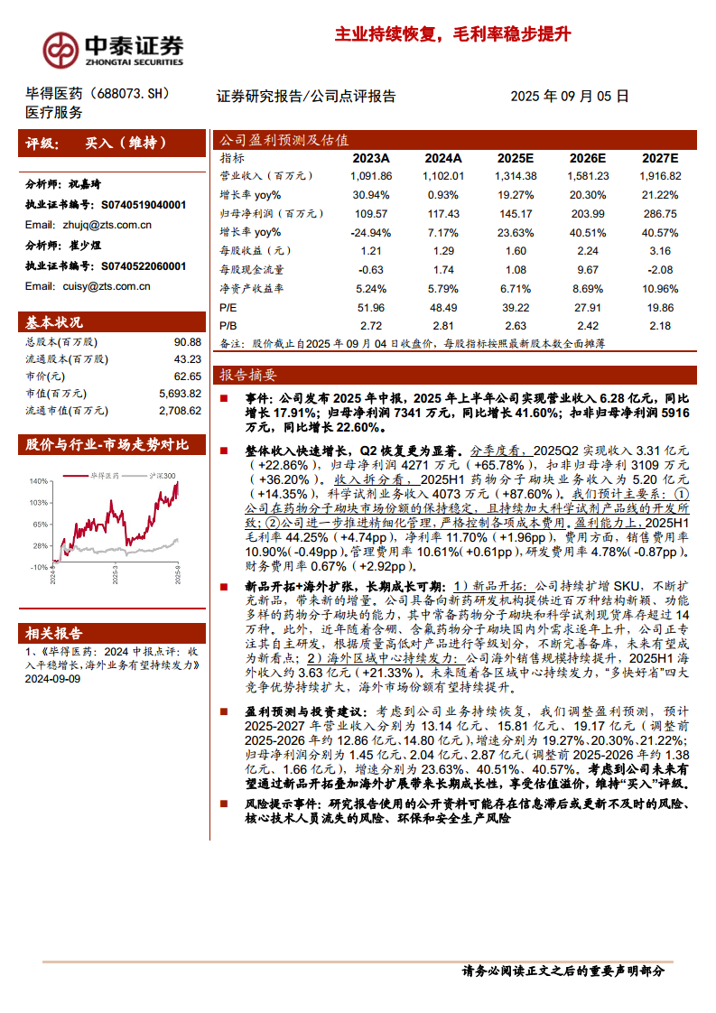 毕得医药(688073):主业持续恢复,毛利率稳步提升