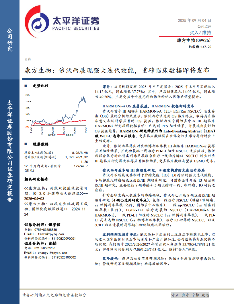 康方生物(09926):依沃西展现强大迭代效能,重磅临床数据即将发布