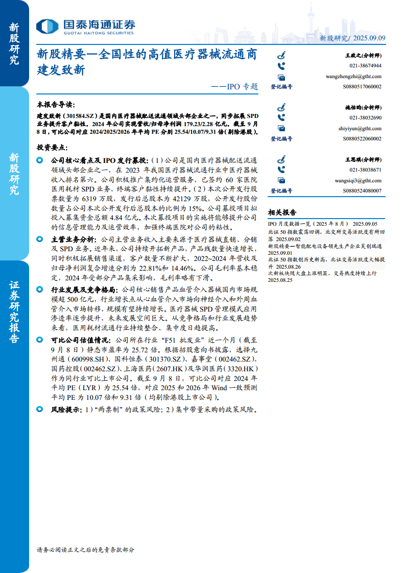 IPO专题:全国性的高值医疗器械流通商建发致新
