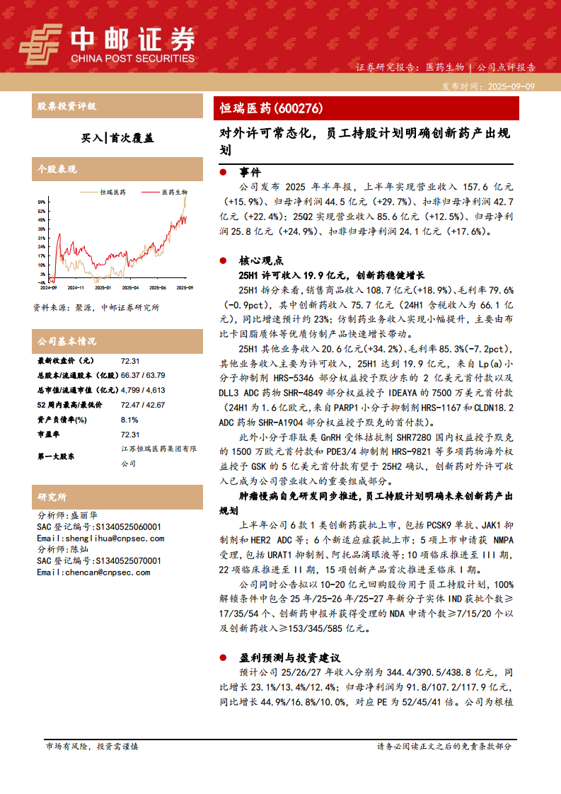 恒瑞医药(600276):对外许可常态化,员工持股计划明确创新药产出规划