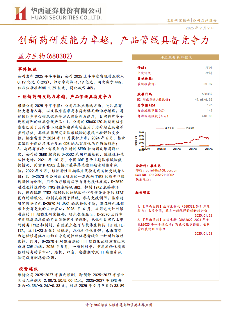 益方生物(688382):创新药研发能力卓越,产品管线具备竞争力