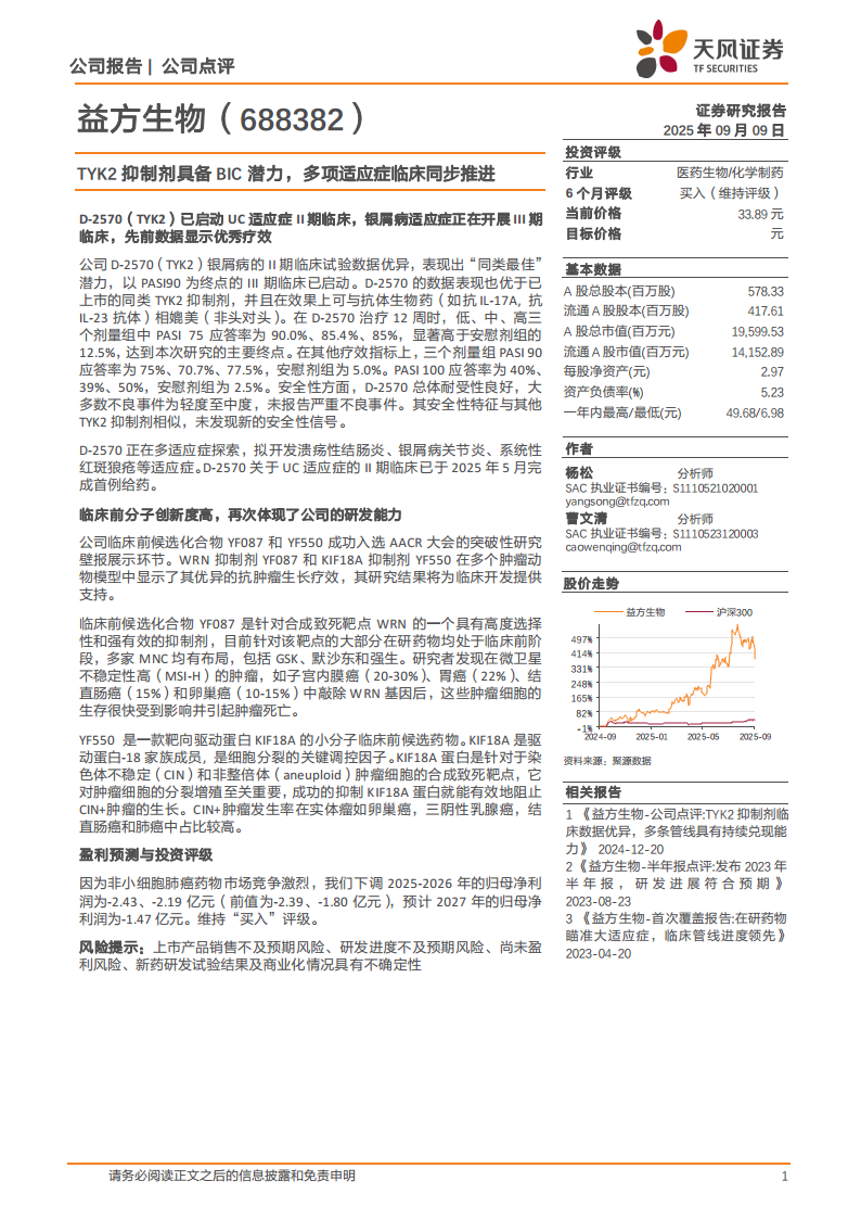 益方生物(688382):TYK2抑制剂具备BIC潜力,多项适应症临床同步推进