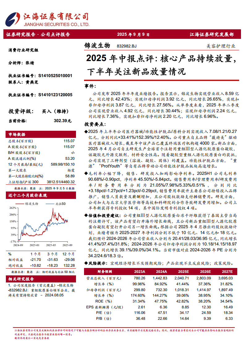 锦波生物(832982):2025年中报点评:核心产品持续放量,下半年关注新品放量情况