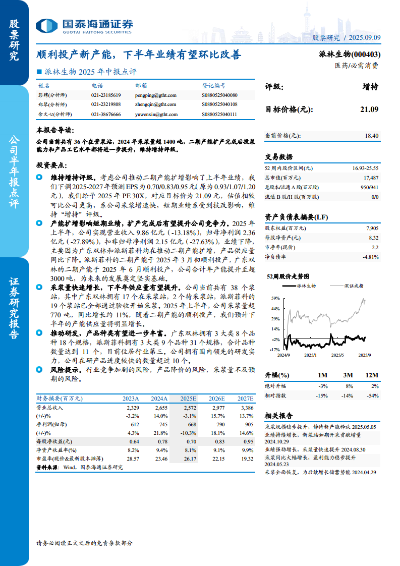 派林生物(000403):顺利投产新产能,下半年业绩有望环比改善