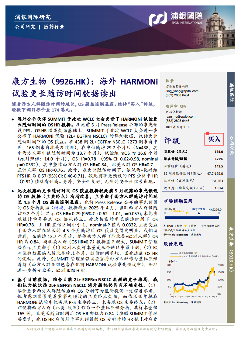 康方生物(09926):海外HARMONi试验更长随访时间数据读出
