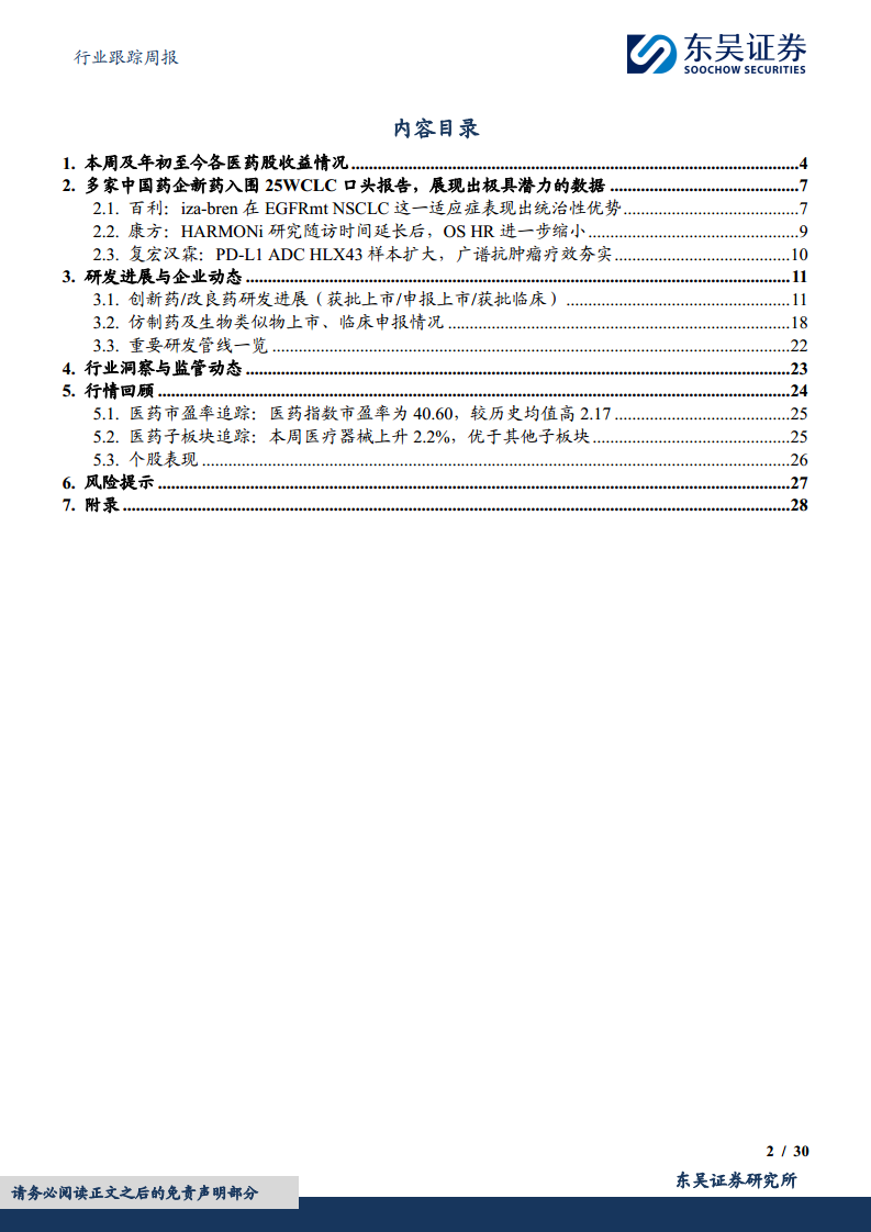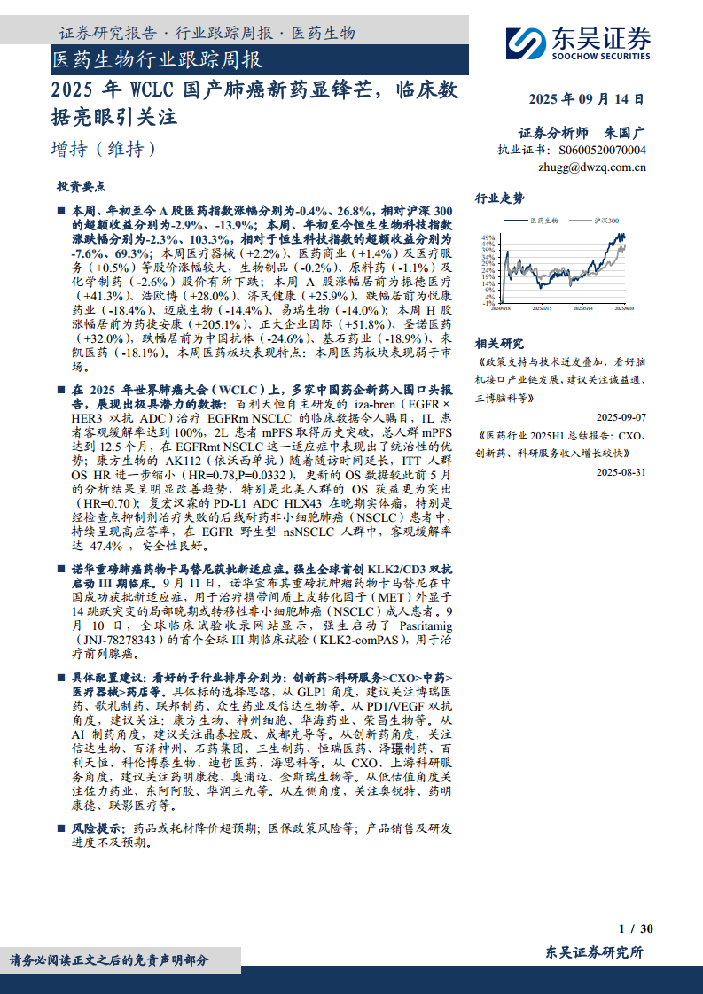 医药生物行业跟踪周报:2025年WCLC国产肺癌新药显锋芒,临床数据亮眼引关注