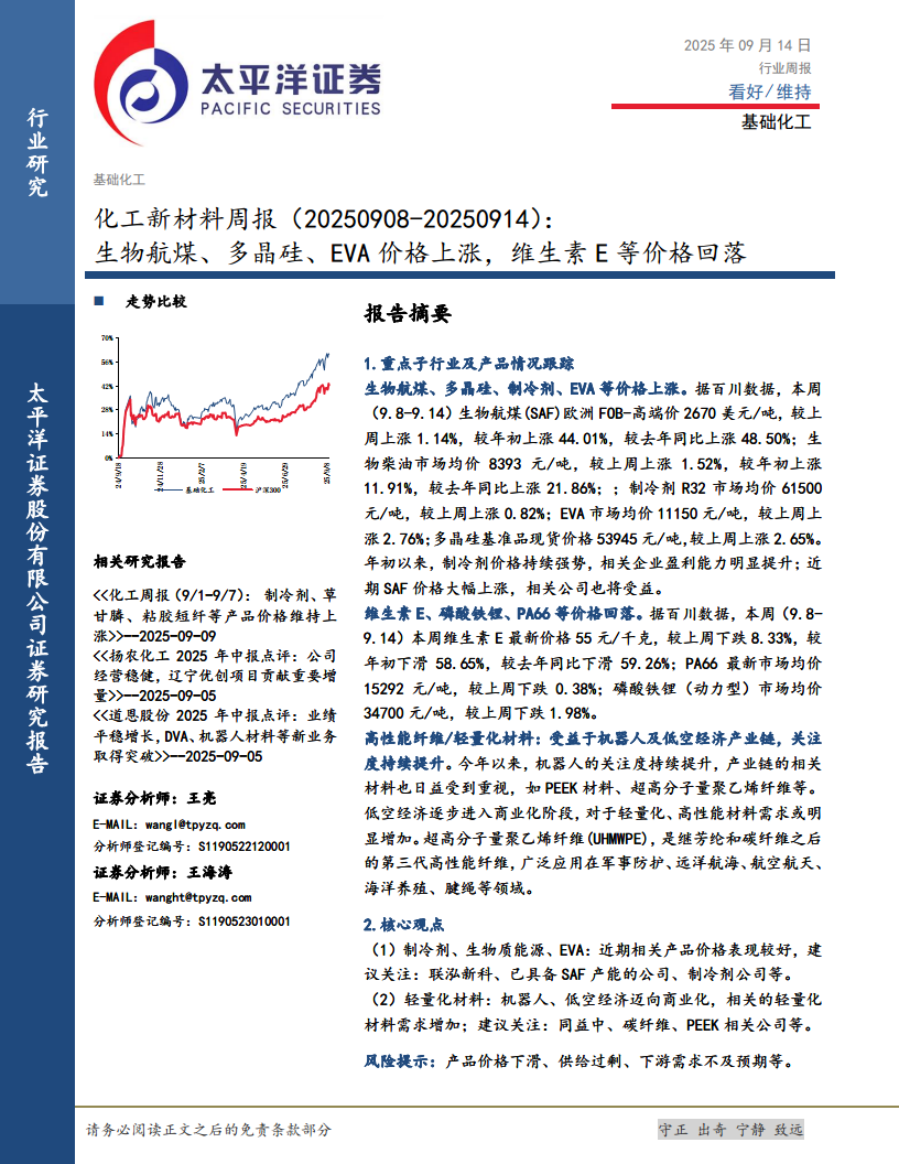 化工新材料周报:生物航煤、多晶硅、EVA价格上涨,维生素E等价格回落