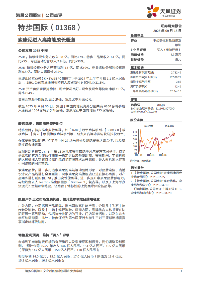 特步国际(01368):索康尼进入高势能成长通道