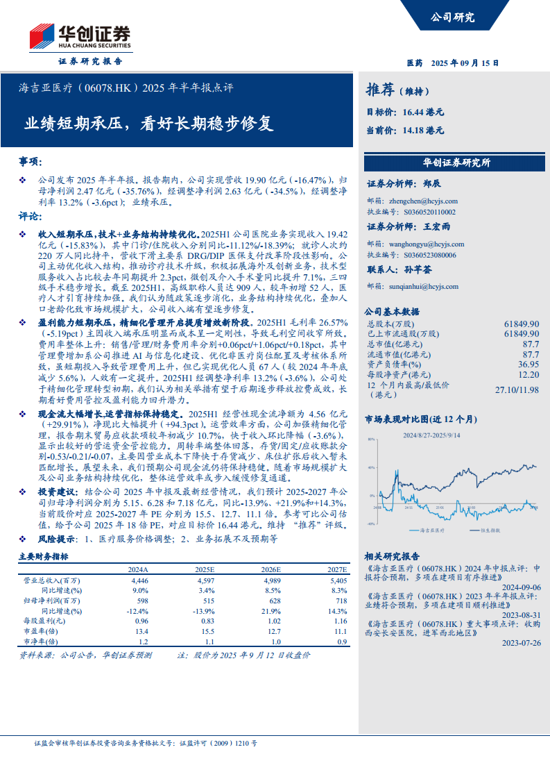 海吉亚医疗(06078):业绩短期承压,看好长期稳步修复