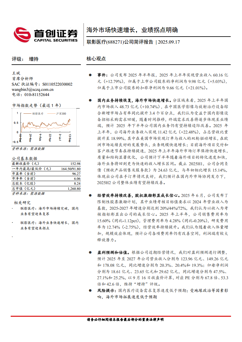 联影医疗(688271):海外市场快速增长,业绩拐点明确