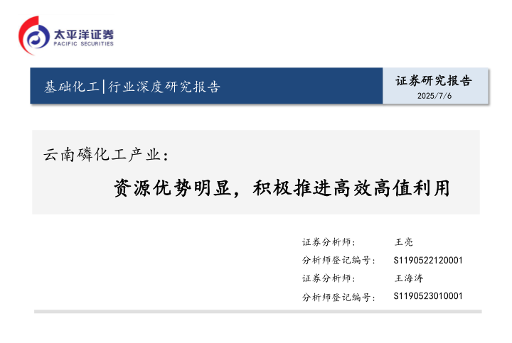 云南磷化工产业:资源优势明显,积极推进高效高值利用