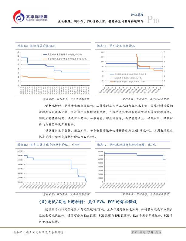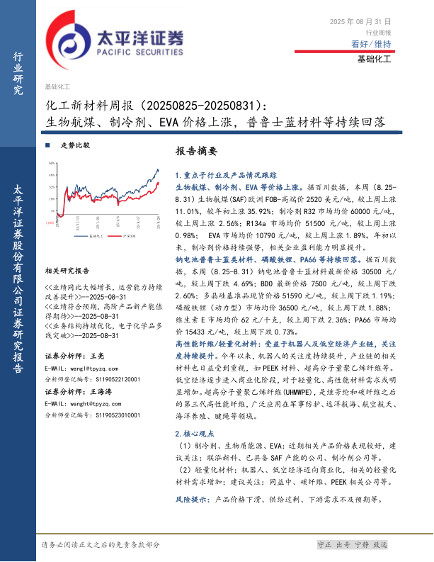 化工新材料行业周报:生物航煤、制冷剂、EVA价格上涨,普鲁士蓝材料等持续回落