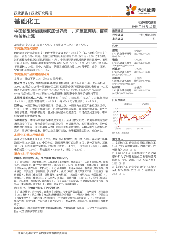 基础化工行业研究周报:中国新型储能规模跃居世界第一,环氧氯丙烷、百草枯价格上涨
