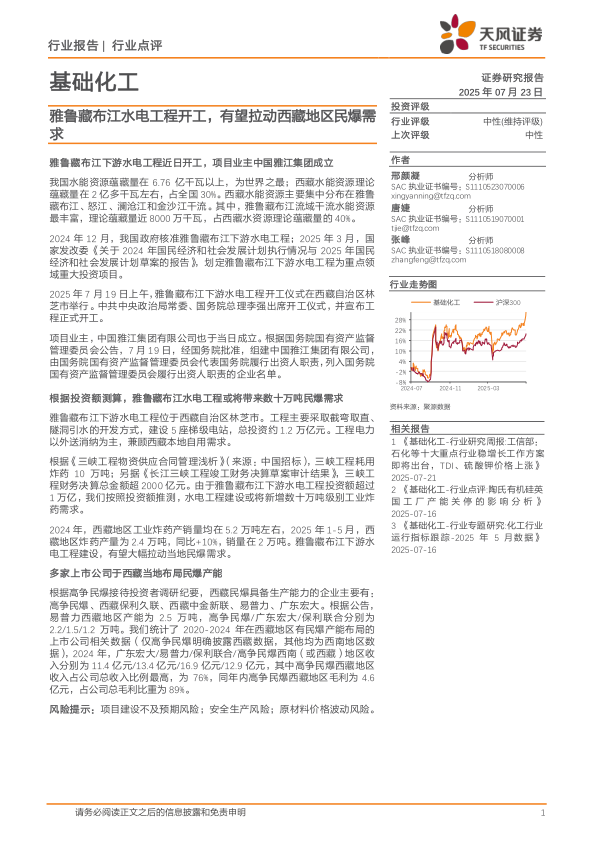 基础化工:雅鲁藏布江水电工程开工,有望拉动西藏地区民爆需求