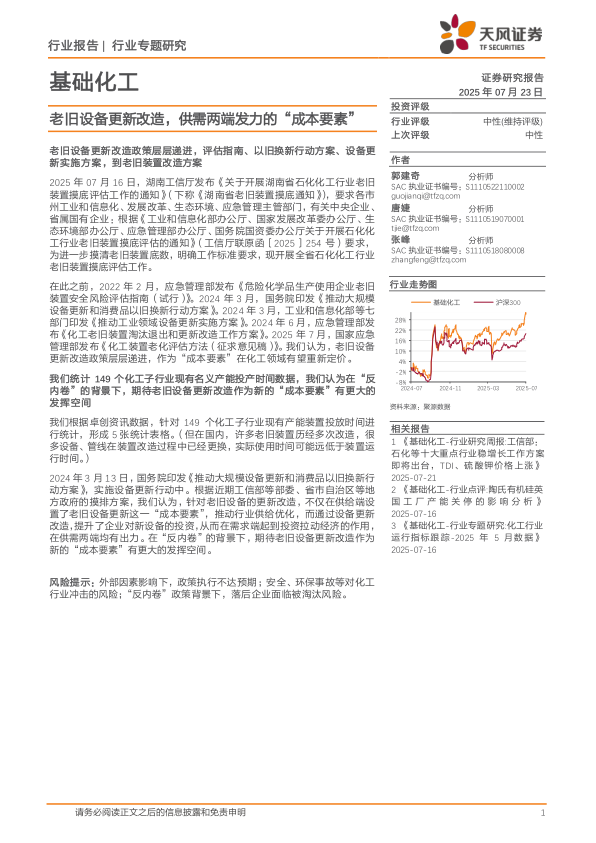 基础化工行业专题研究:老旧设备更新改造,供需两端发力的“成本要素”