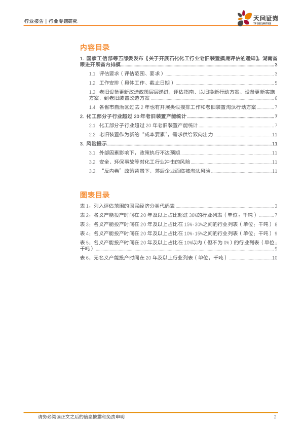风险提示:外部因素影响下,政策执行不达预期;安全、环保事故等对化工行业冲击的风险;“反内卷”政策背景下,落后企业面临被淘汰风险。