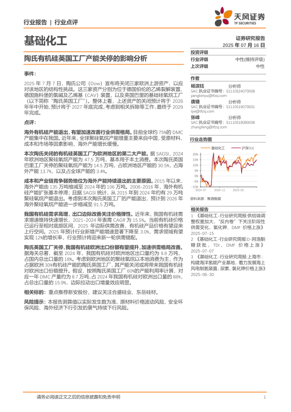 基础化工:陶氏有机硅英国工厂产能关停的影响分析