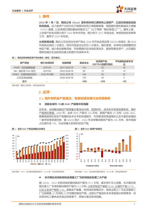 陶氏英国工厂关停,我国有机硅欧洲出口份额有望提升,加速供需格局改善。