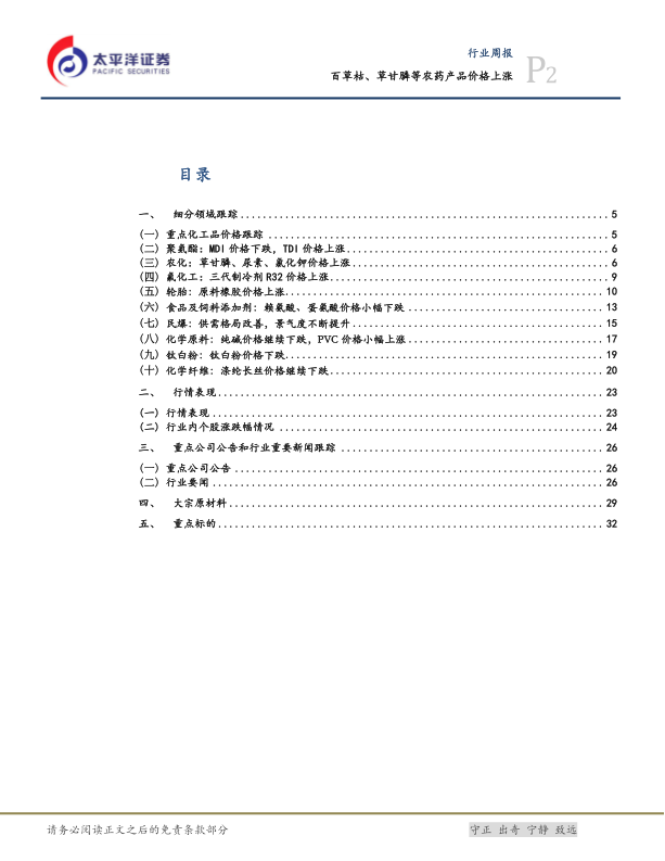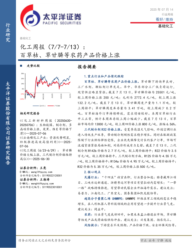 化工行业周报:百草枯、草甘膦等农药产品价格上涨