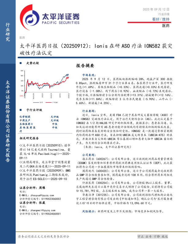 医药日报:Ionis在研ASO疗法ION582获突破性疗法认定