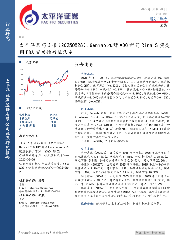 医药日报:Genmab在研ADC新药Rina-S获美国FDA突破性疗法认定