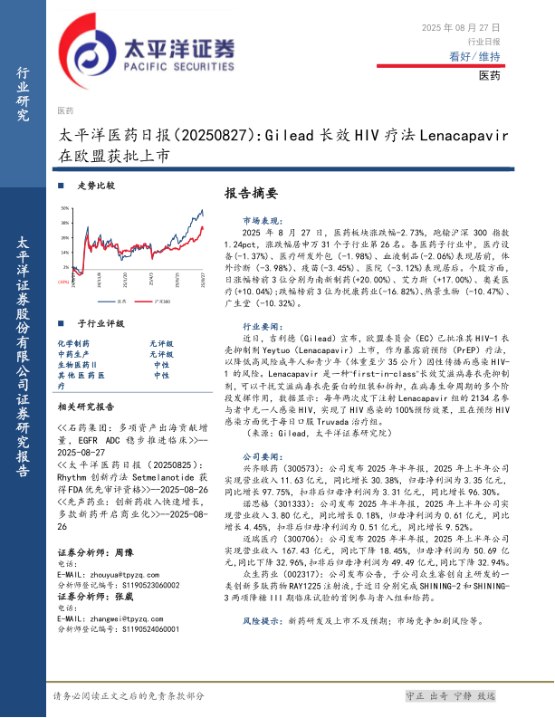 医药日报:Gilead长效HIV疗法Lenacapavir在欧盟获批上市