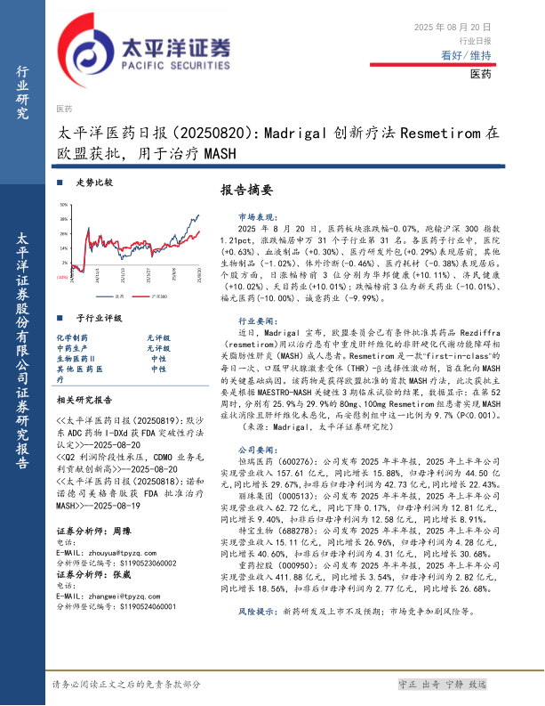 医药日报:Madrigal创新疗法Resmetirom在欧盟获批,用于治疗MASH
