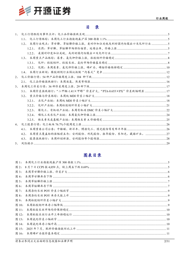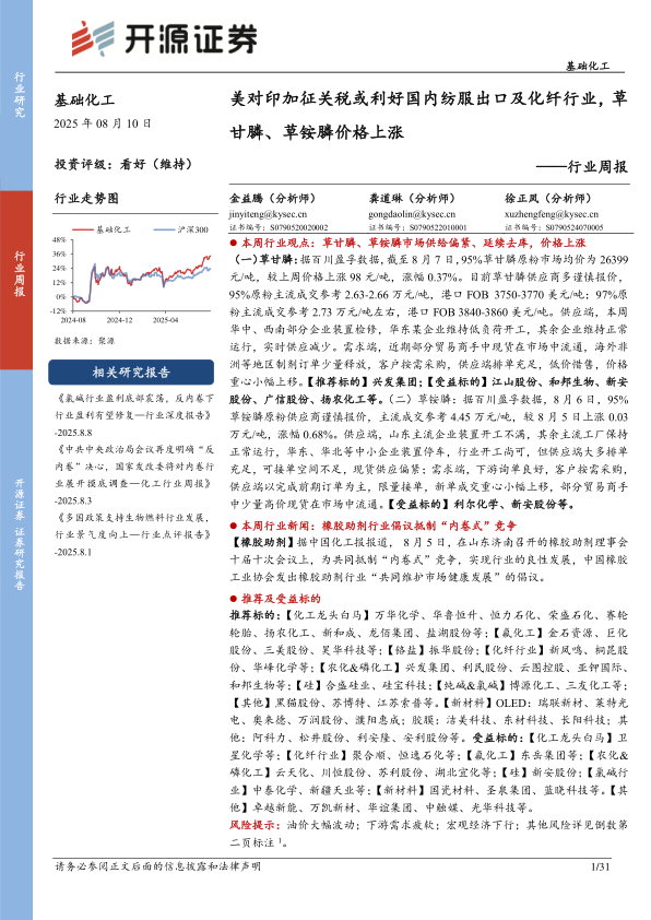 基础化工行业周报:美对印加征关税或利好国内纺服出口及化纤行业,草甘膦、草铵膦价格上涨