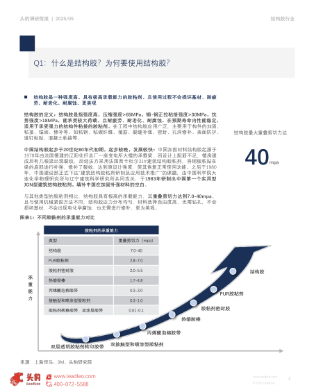 结构胶是一种强度高,具有极高承载能力的胶粘剂。且使用过程不会损坏基材、耐疲劳、耐老化、耐腐蚀、更美观