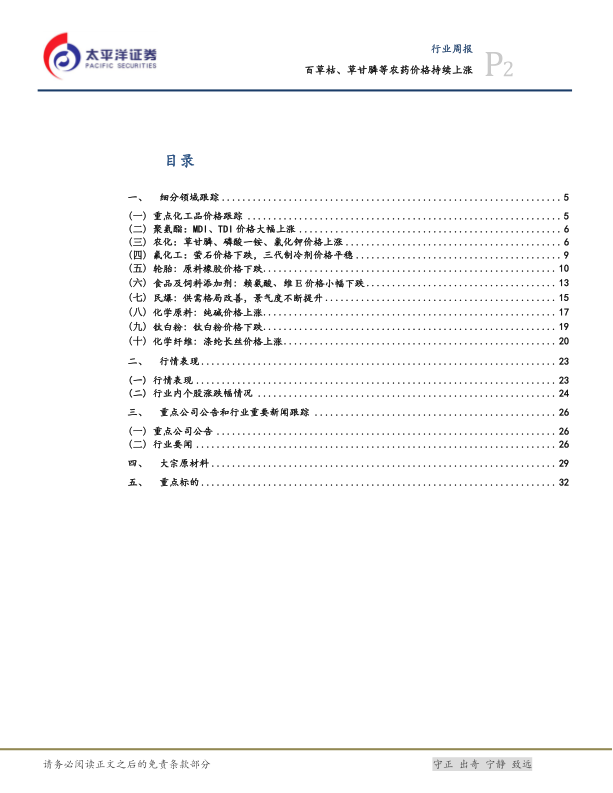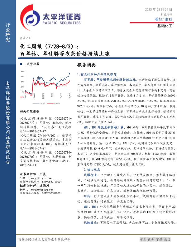化工行业周报:百草枯、草甘膦等农药价格持续上涨