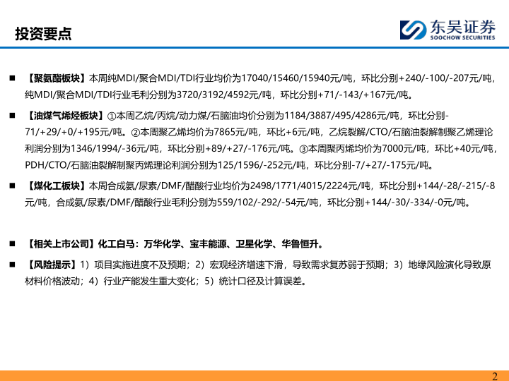 【相关上市公司】化工白马:万华化学、宝丰能源、卫星化学、华鲁恒升。