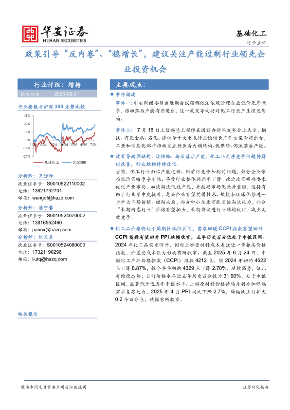 基础化工:政策引导“反内卷”、“稳增长”,建议关注产能过剩行业领先企业投资机会