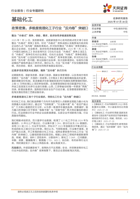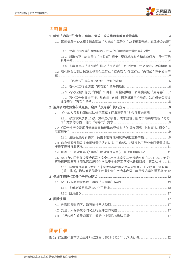 风险提示:外部因素影响下,政策执行不达预期;安全、环保事故等对化工行业冲击的风险;反内卷”政策背景下,落后企业面临被淘汰风险。