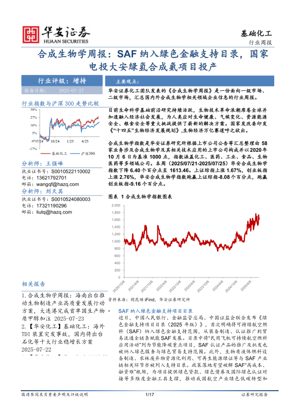 合成生物学周报:SAF纳入绿色金融支持目录,国家电投大安绿氢合成氨项目投产