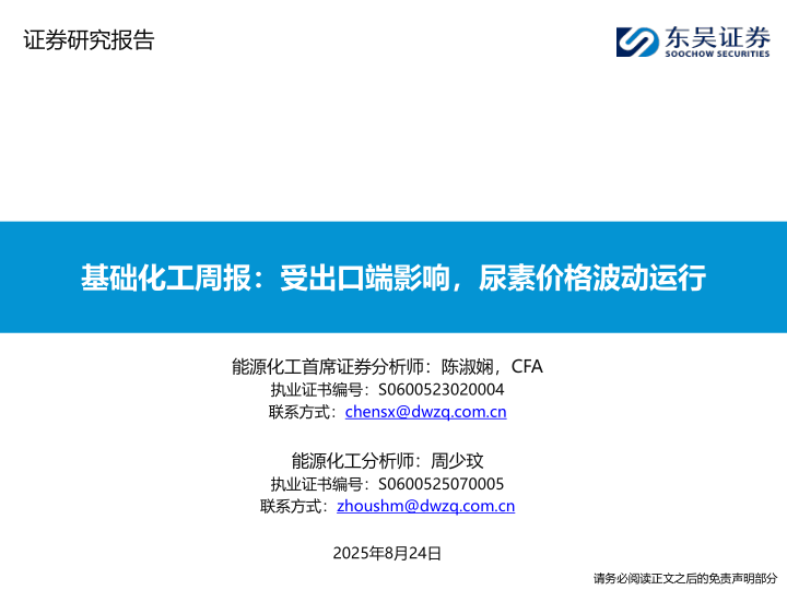 基础化工周报:受出口端影响,尿素价格波动运行
