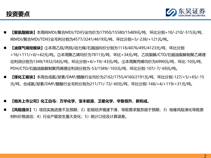 【相关上市公司】化工白马:万华化学、宝丰能源、卫星化学、华鲁恒升、新和成。