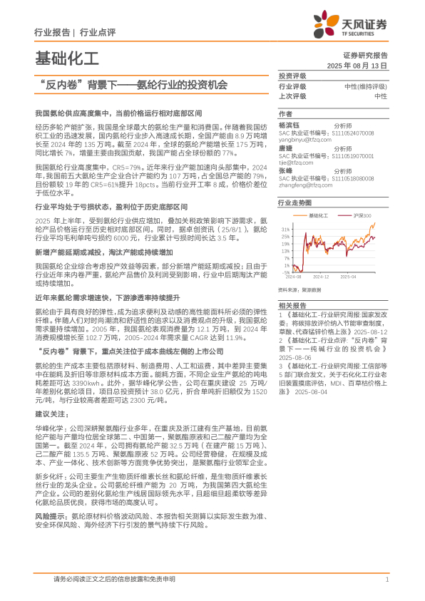 基础化工行业点评:“反内卷”背景下——氨纶行业的投资机会