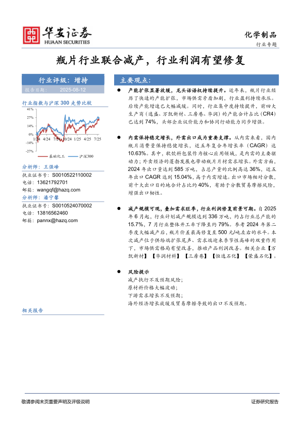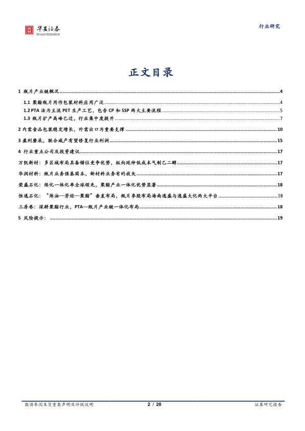 化学制品行业专题:瓶片行业联合减产,行业利润有望修复