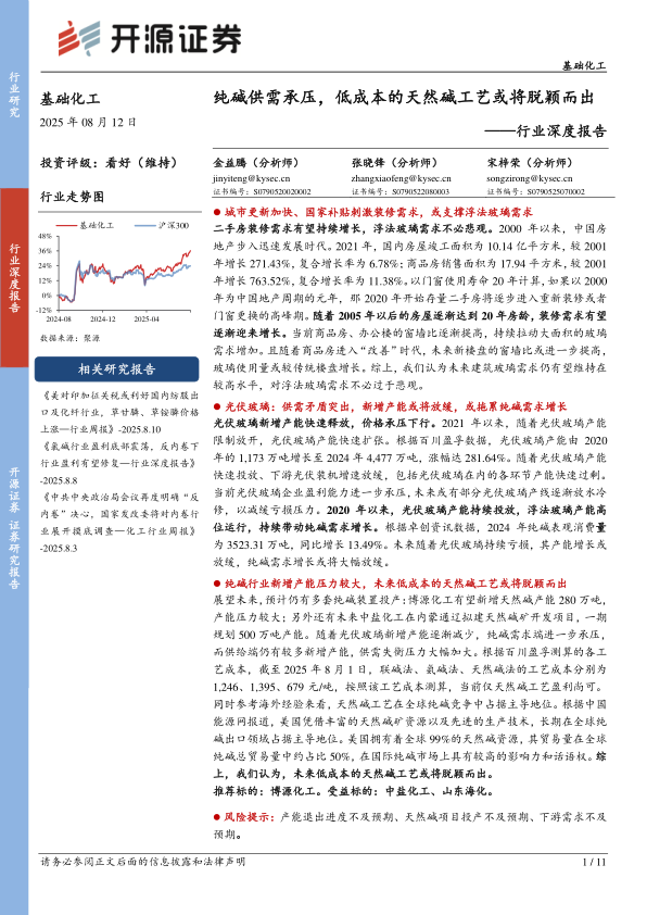 基础化工行业深度报告:纯碱供需承压,低成本的天然碱工艺或将脱颖而出