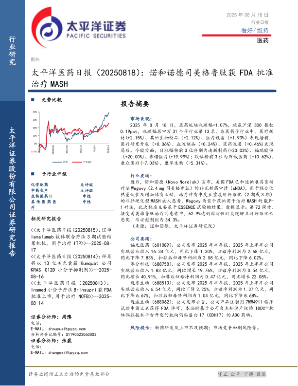 医药日报:诺和诺德司美格鲁肽获FDA批准治疗MASH