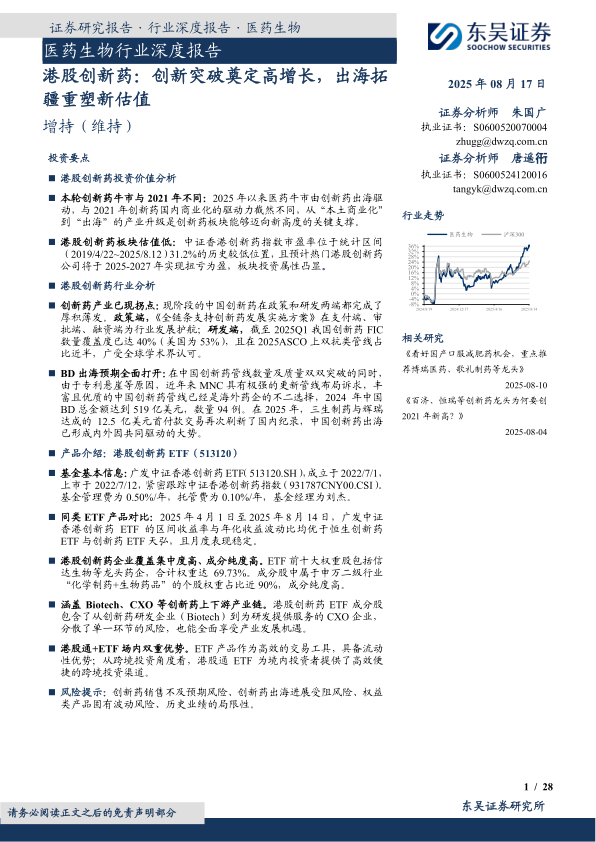 医药生物行业深度报告:港股创新药:创新突破奠定高增长,出海拓疆重塑新估值