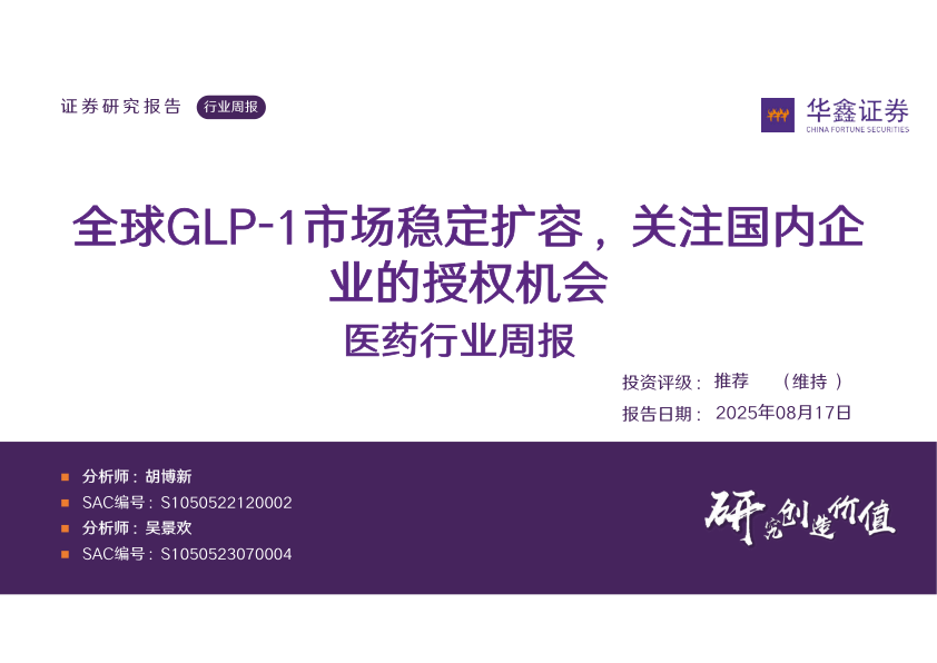 医药行业周报:全球GLP-1市场稳定扩容,关注国内企业的授权机会