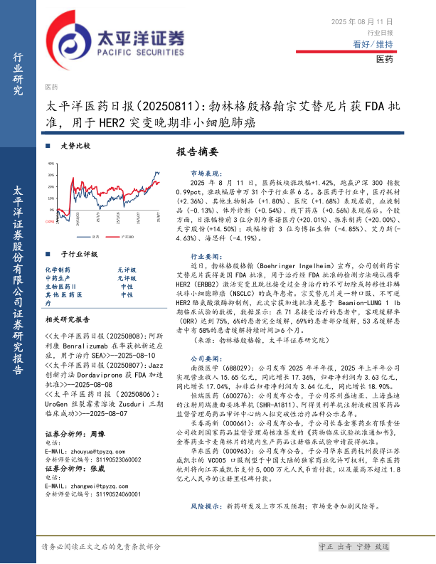 医药日报:勃林格殷格翰宗艾替尼片获FDA批准,用于HER2突变晚期非小细胞肺癌
