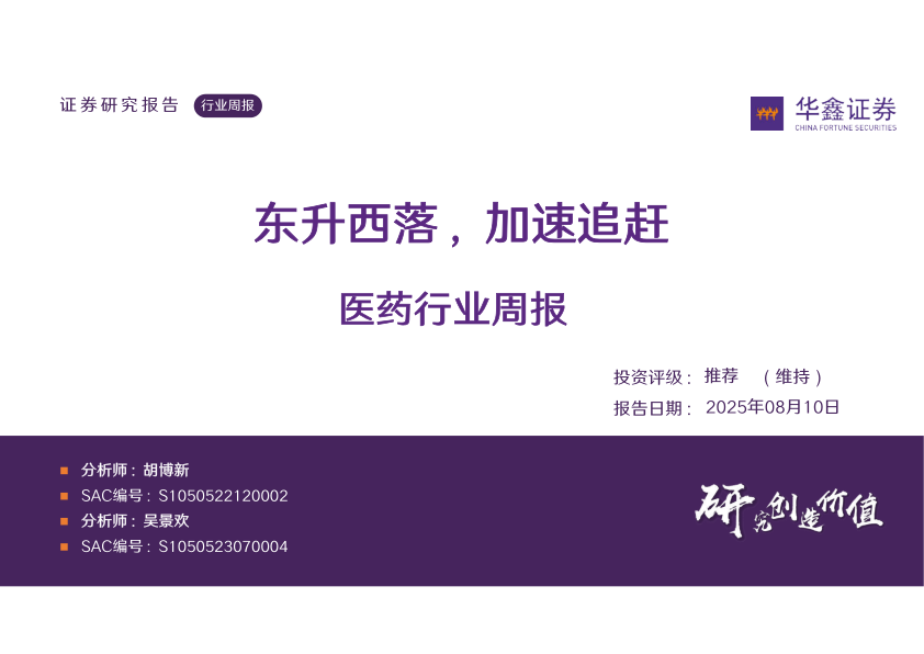 在目前国内创新支付体系下,部分创新品种已经实现研发投入回报的正循环,销售额持续新高,同时海外临床数据陆续发布,对外授权进入高峰期,创新价值兑现加速,维持医药行业“推荐”的评级,具体的推选方向和选股思路如下: