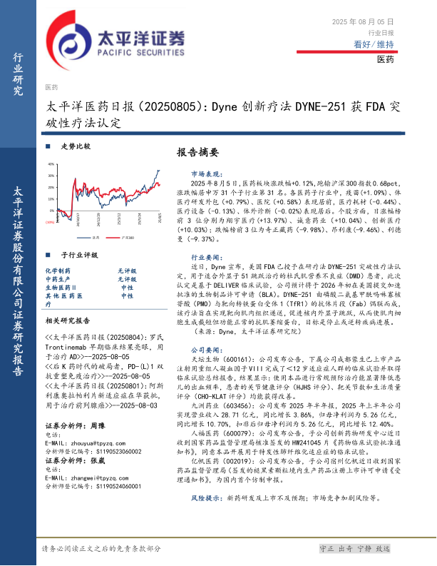 医药日报:Dyne创新疗法DYNE-251获FDA突破性疗法认定