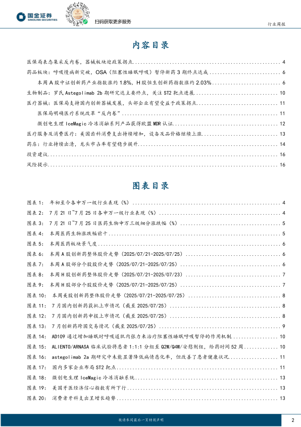 我们继续对医药板块在2025年走出反转行情抱有强烈信心,创新药主线和左侧板块困境反转依然是2025年医药板块的最大投资机会。建议关注泛癌种潜力的双/多抗药物、解决未满足临床需求的慢病药管线的创新药板块投资机会。关注半年报潜在业绩超预期的创新药产业链(创新药+CXO+生命科学上游)投资机会,同时关注集采政策优化下,器械经营拐点。